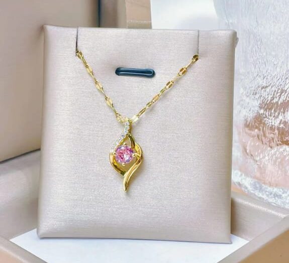 Leaf Shape Pendant with Beautiful Pinkish Stone